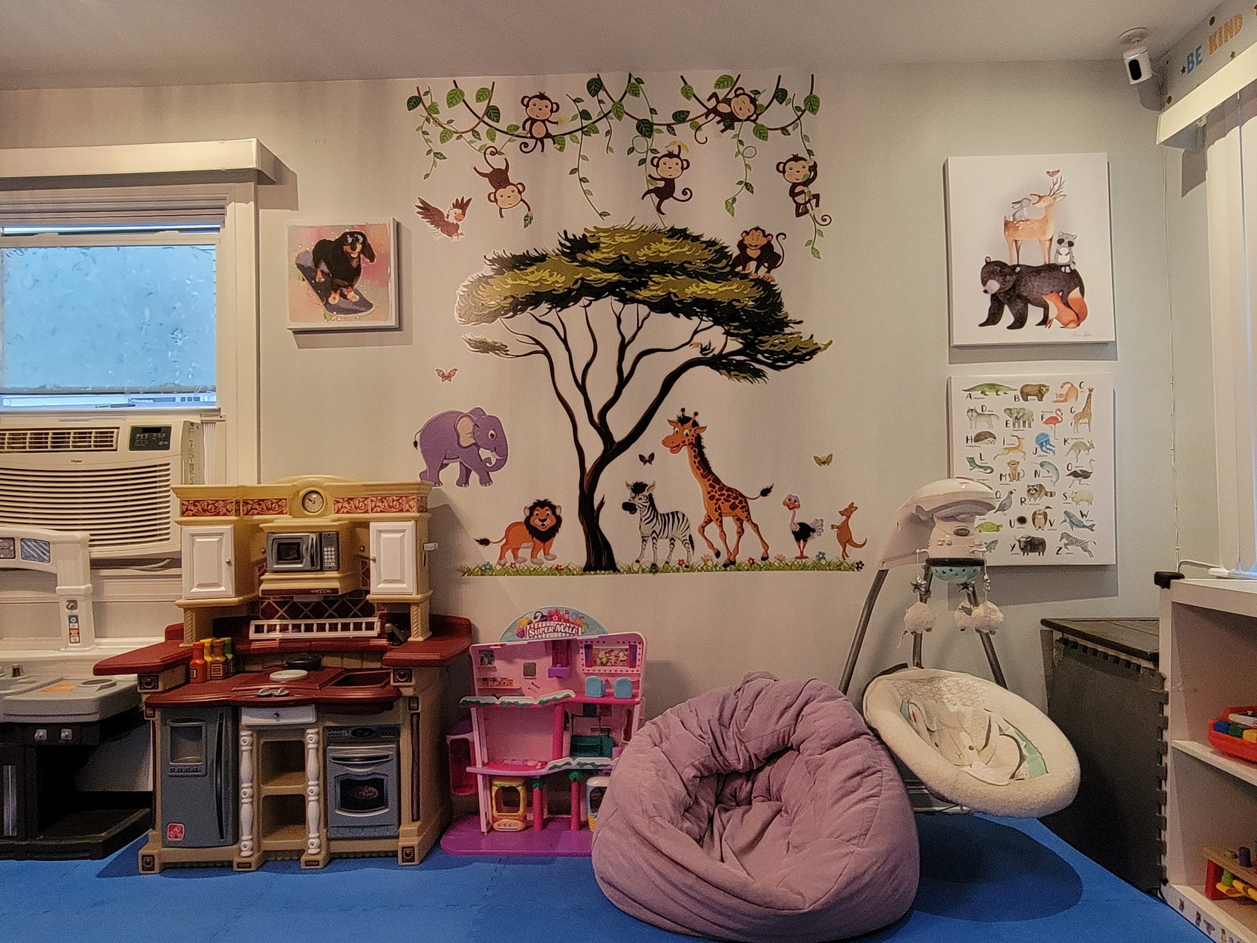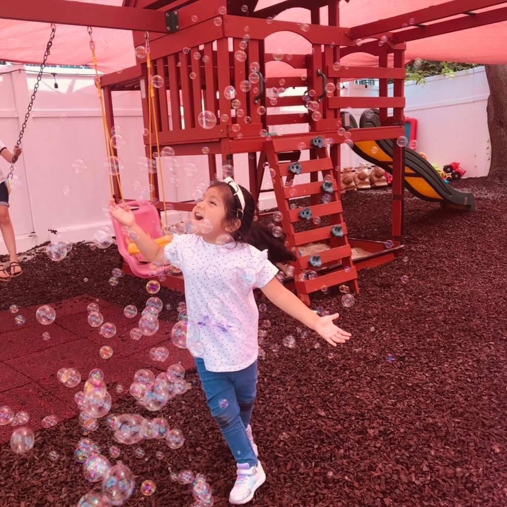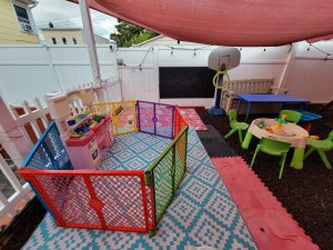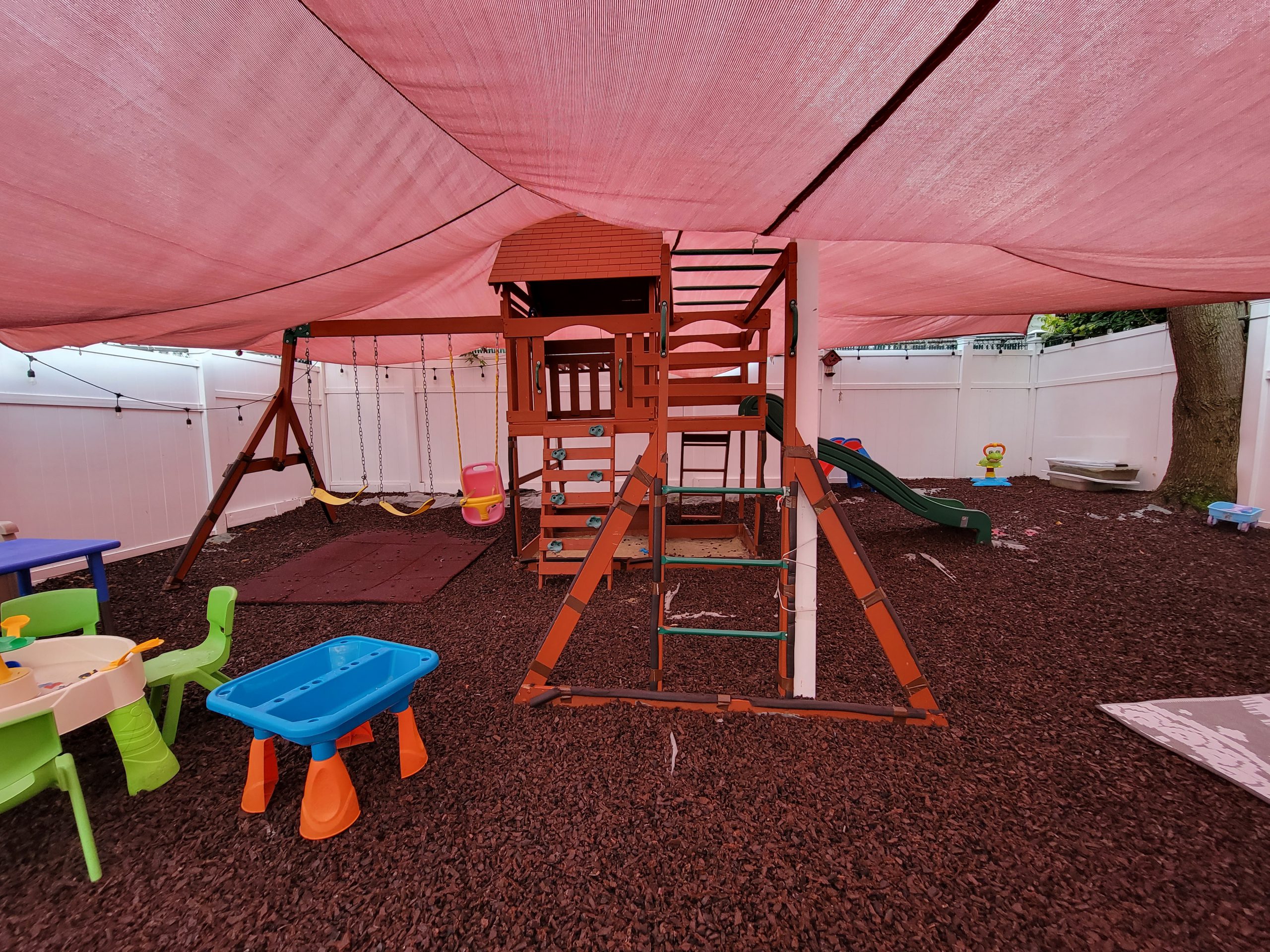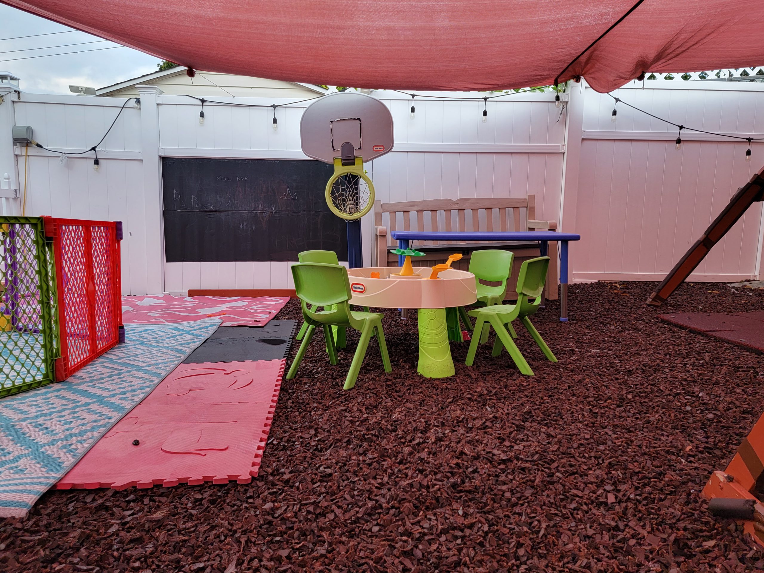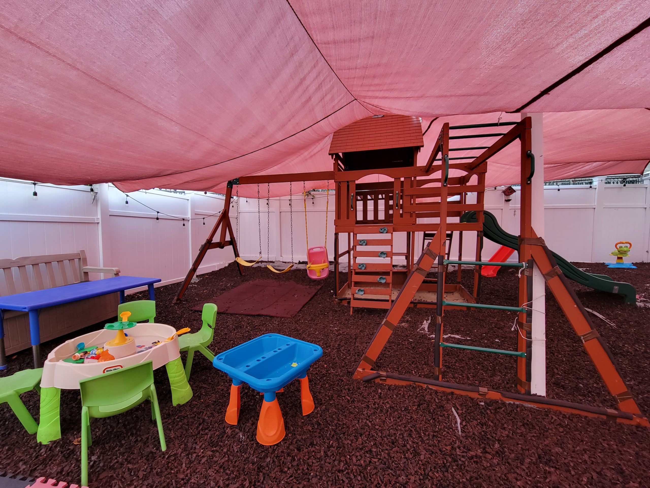 Our outdoor playground area offers a shaded and fenced backyard with variety of activities and toys that allows the opportunity for physical, and secure activities.